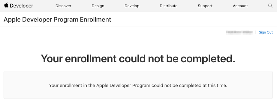 appleid.apple.com üzerinden yeni bir apple hesabı oluşturdum. Oluşturduğum hesap ile developer.apple.com/programs/enroll üzerinden developer hesabı oluşturma adımına geçtim. Burada gerekli bilgileri girip, ödeme adımına geldiğimde aşağıdaki hata ile karşılaştım.